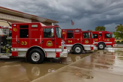 Daily staffing includes three engine companies, each with three firefighters, and a Battalion Chief overseeing citywide operations. The department is led by a Fire Chief and supported by a newly appointed Fire Marshal who oversees prevention, inspection, and development services.