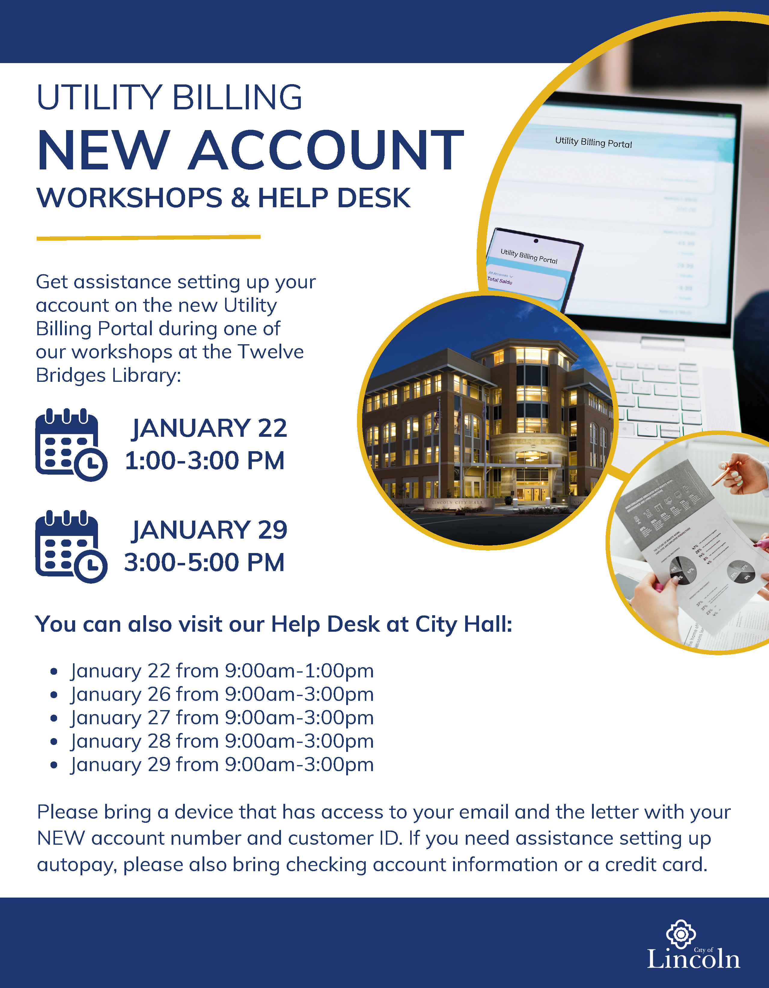 Get assistance setting up your account on the new Utility Billing Portal during one of our workshops at the Twelve Bridges Library: