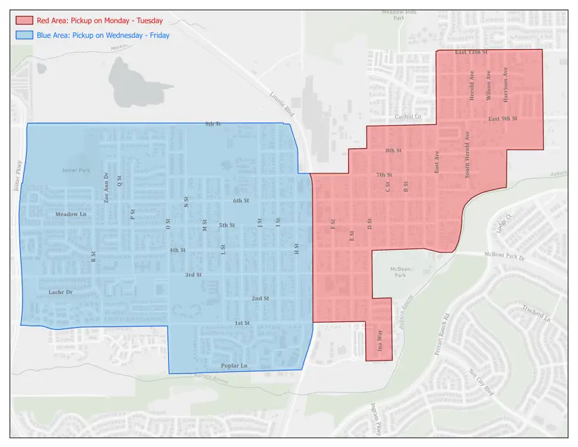 - Residents in the red area of the map should have leaves ready for collection by Sunday evening.