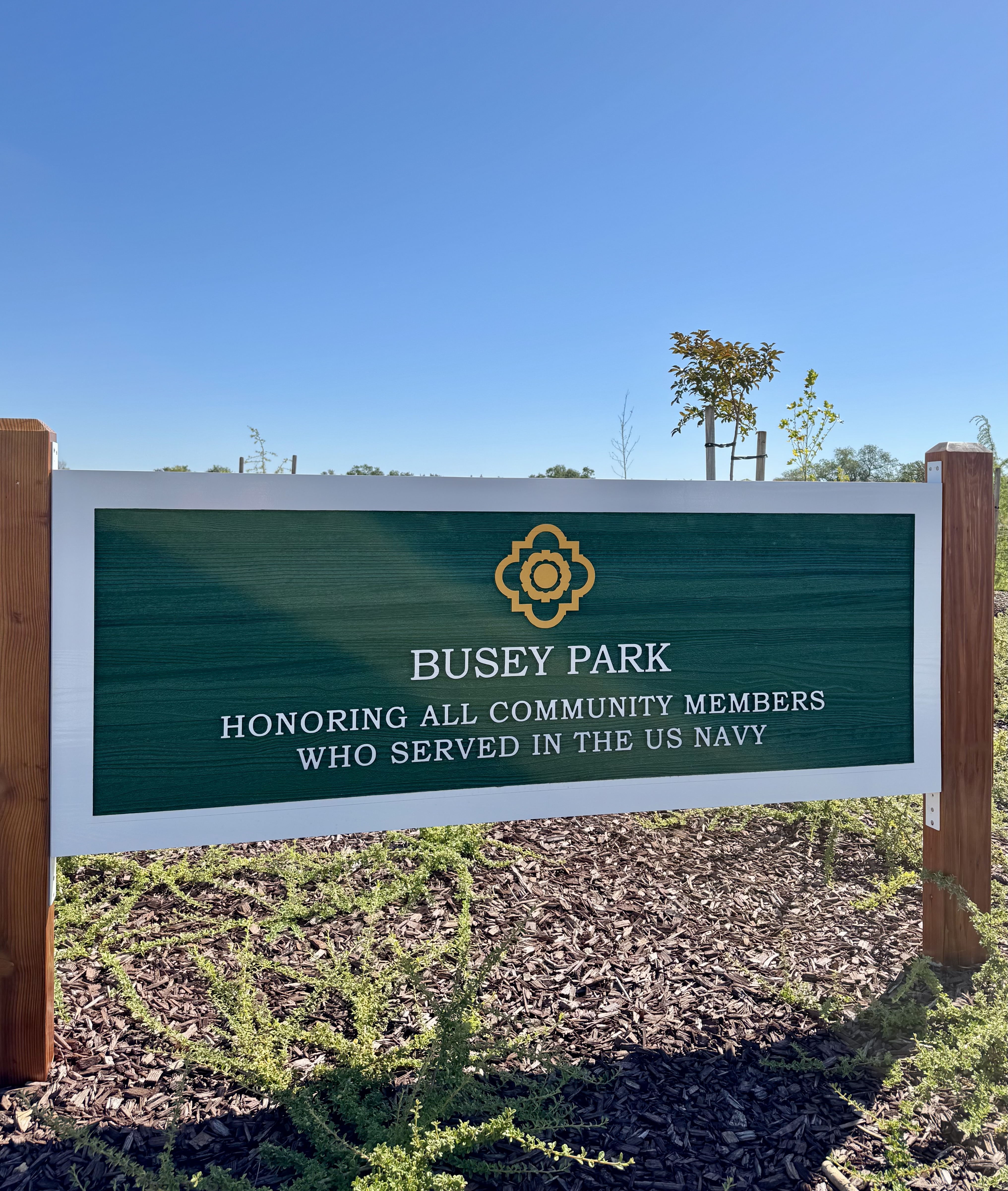 This 5.6-acre park includes a 5-12 age play area, game table, picnic table, bench seating, drinking fountain, trash receptacles, bike racks, pollinator garden with decomposed granite paths, and shade and accent tree plantings.