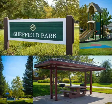This 1.5-acre neighborhood park includes two play structures, swings, and small shade structures with tables.